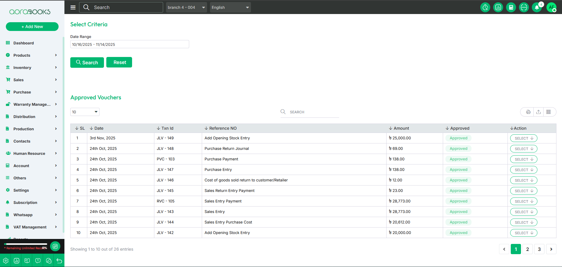 Voucher Approval is the process of reviewing and approving vouchers before they are finalized. From here, you can view all voucher approvals with details such as: