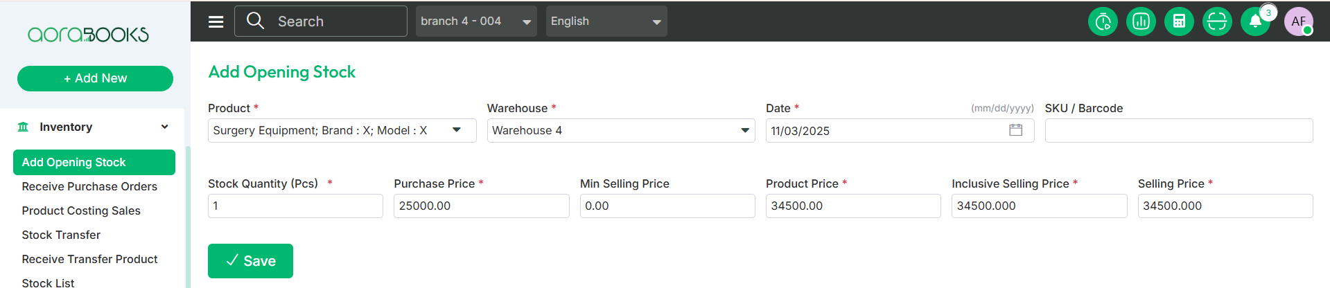 Save: After filling in all the required details, simply click the "Save" button, and your product will be added to the stock successfully.
