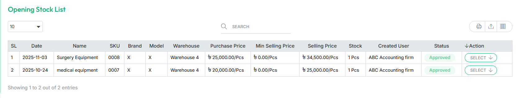 After saving, the product will be listed in the opening stock list.