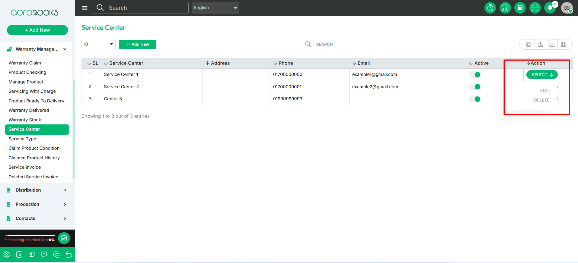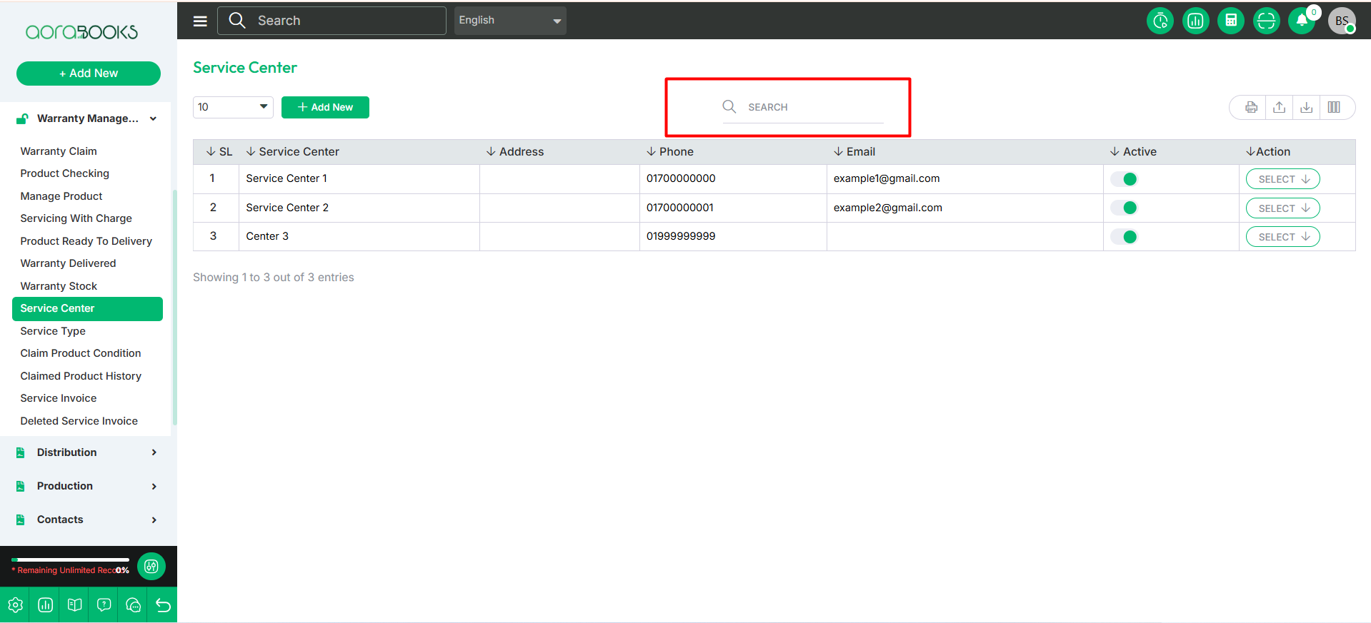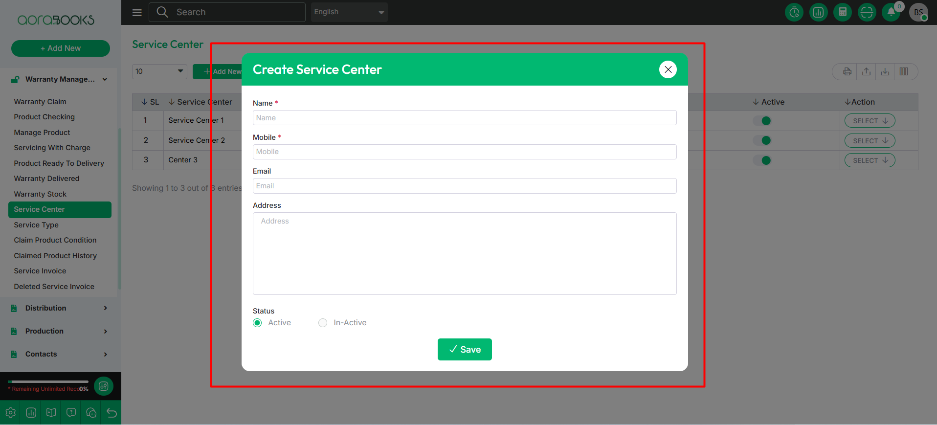 Add New: To add a new service center you have to click the button and follow the below steps: