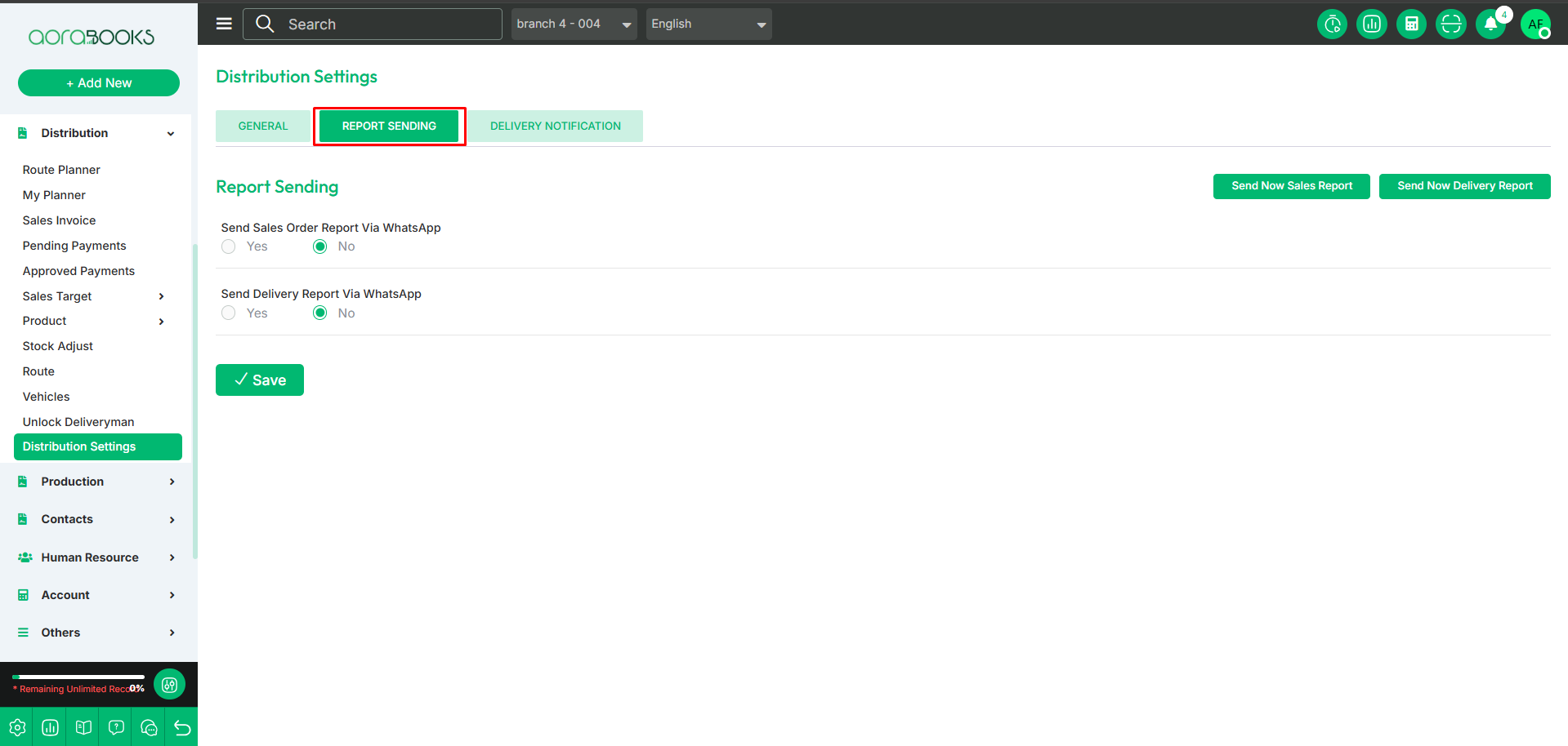 Send sales order Delivery report via WhatsApp: Select " yes or no.