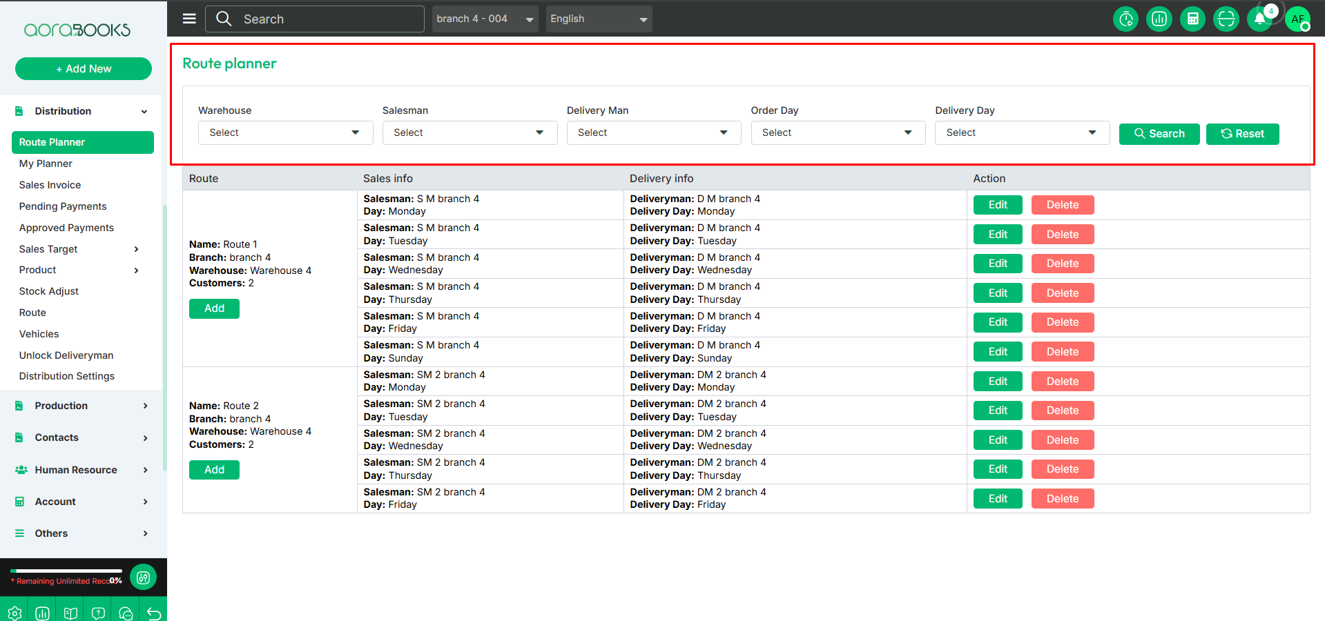 The Route Planner is a tool used for planning and optimizing delivery or travel routes. It helps in efficiently scheduling trips, calculating distances, and selecting the best routes for transportation, ensuring timely deliveries and cost-effective travel. From here you can set all the routes with detailed information. You can schedule a trip from here and also assign all the information related to sales & delivery from here.