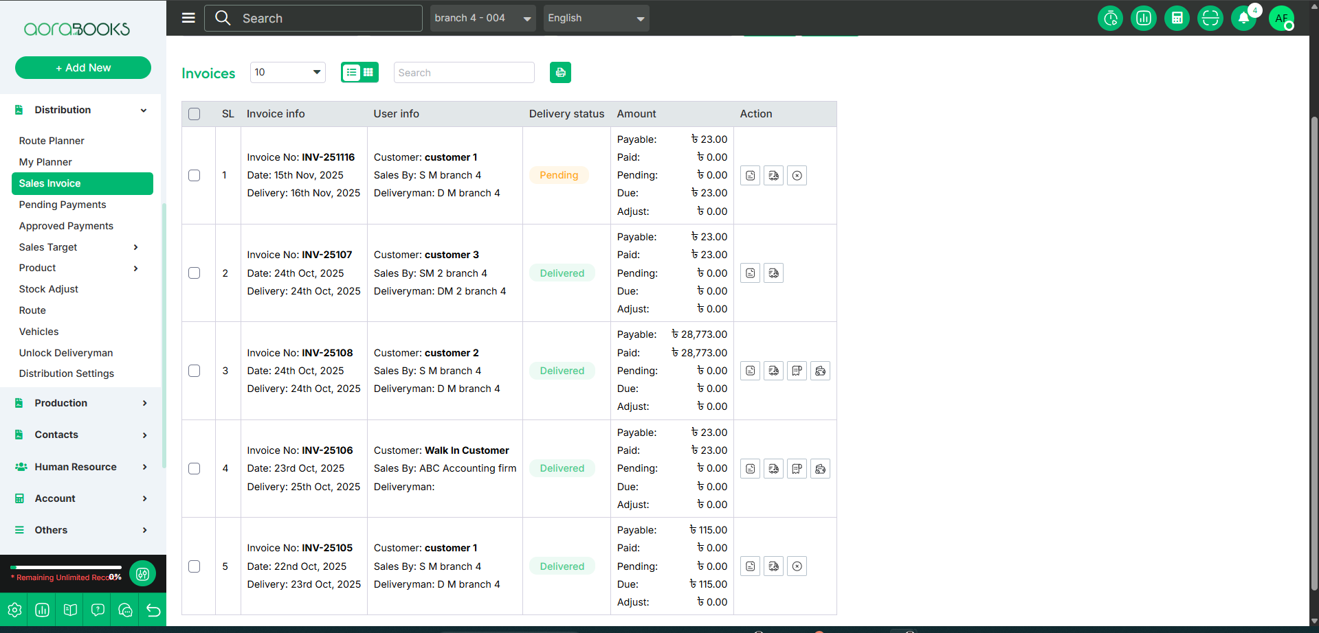 From here, you can view all the sales invoices with detailed information, providing you with an overview of all the sales transactions. The details include: