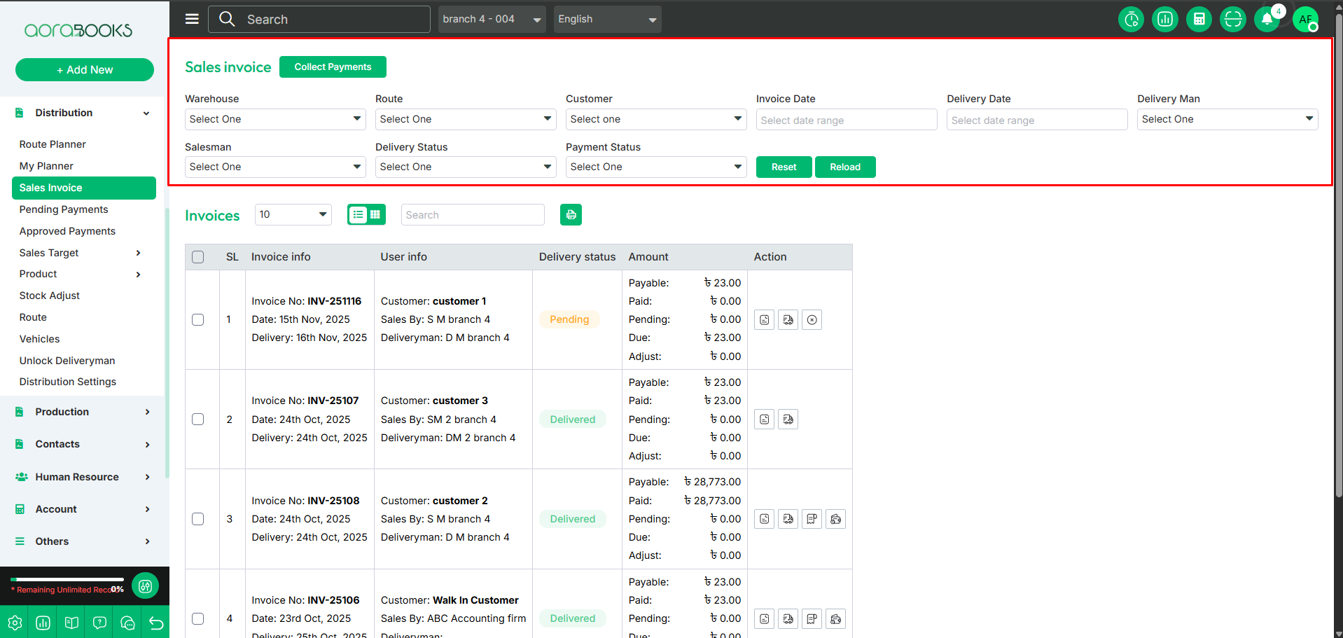 Search: You can find out any specific invoice from the list by using the search functionality.