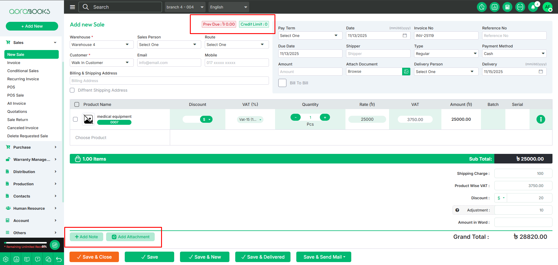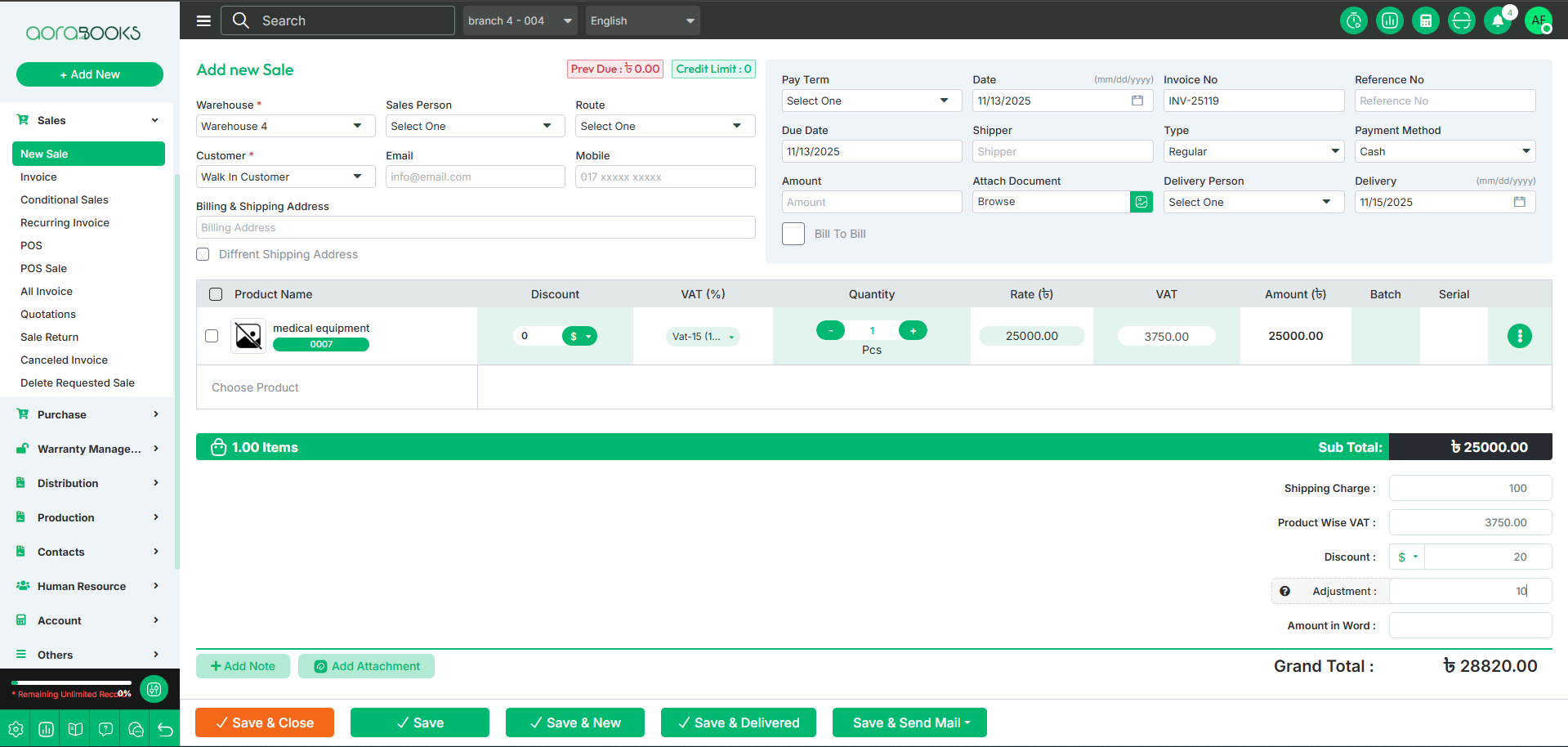 Save and Deliver: If you click on this button, your sale will be saved, and the delivery status will be updated to delivered.