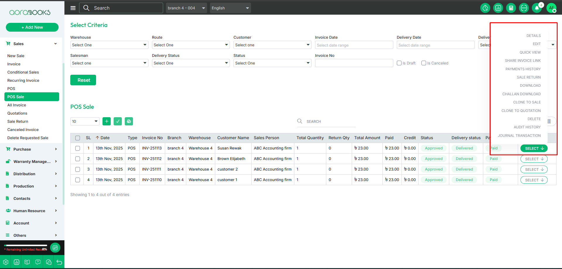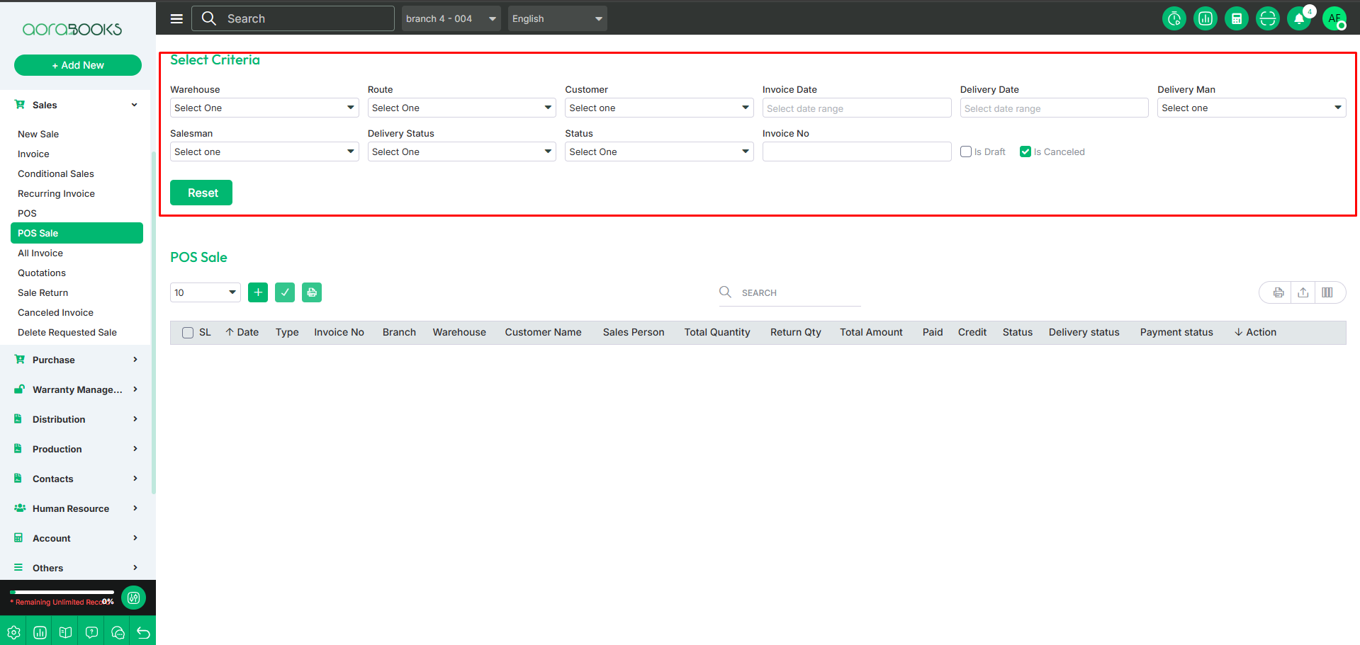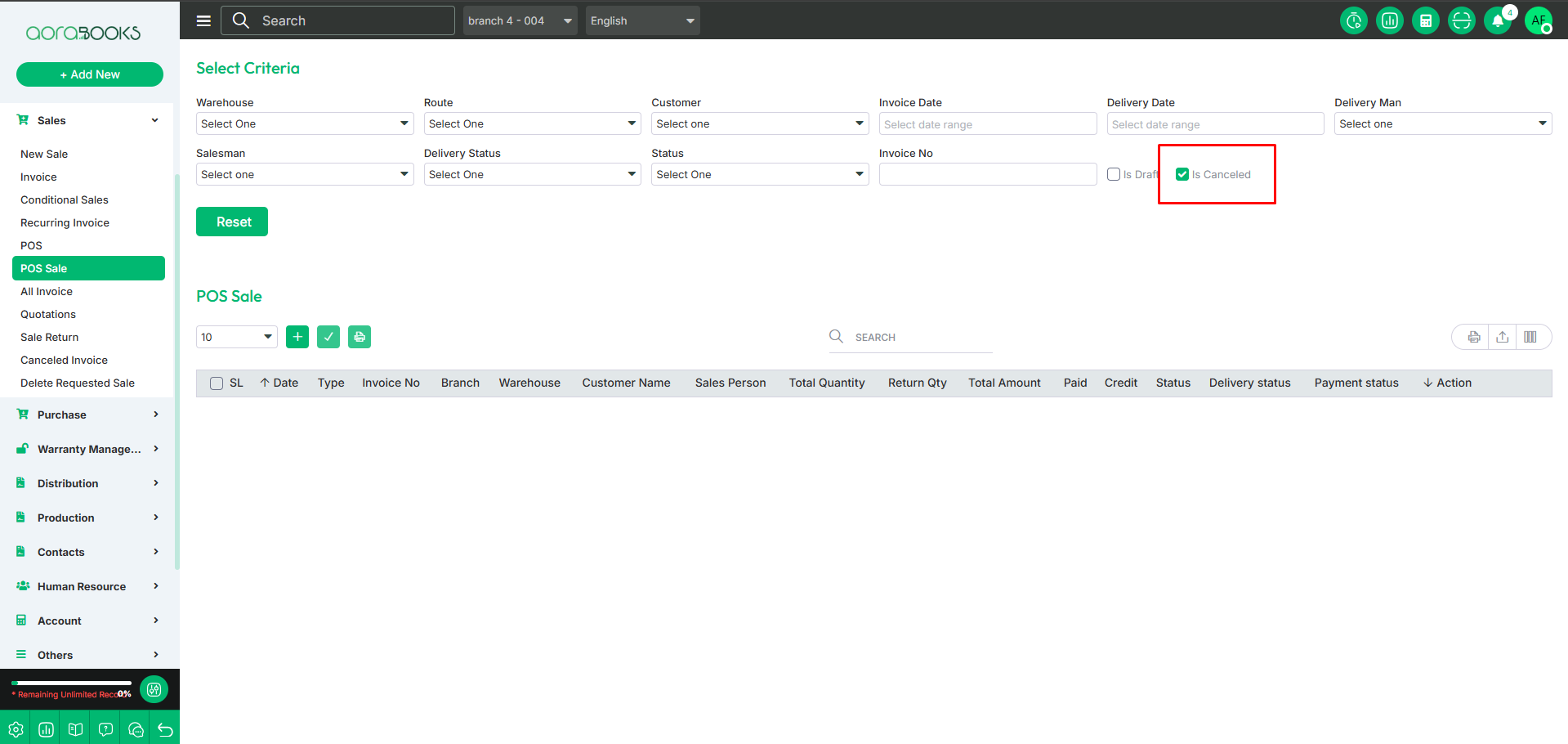 Canceled List: By clicking this, you can see the canceled list of the pos sale.