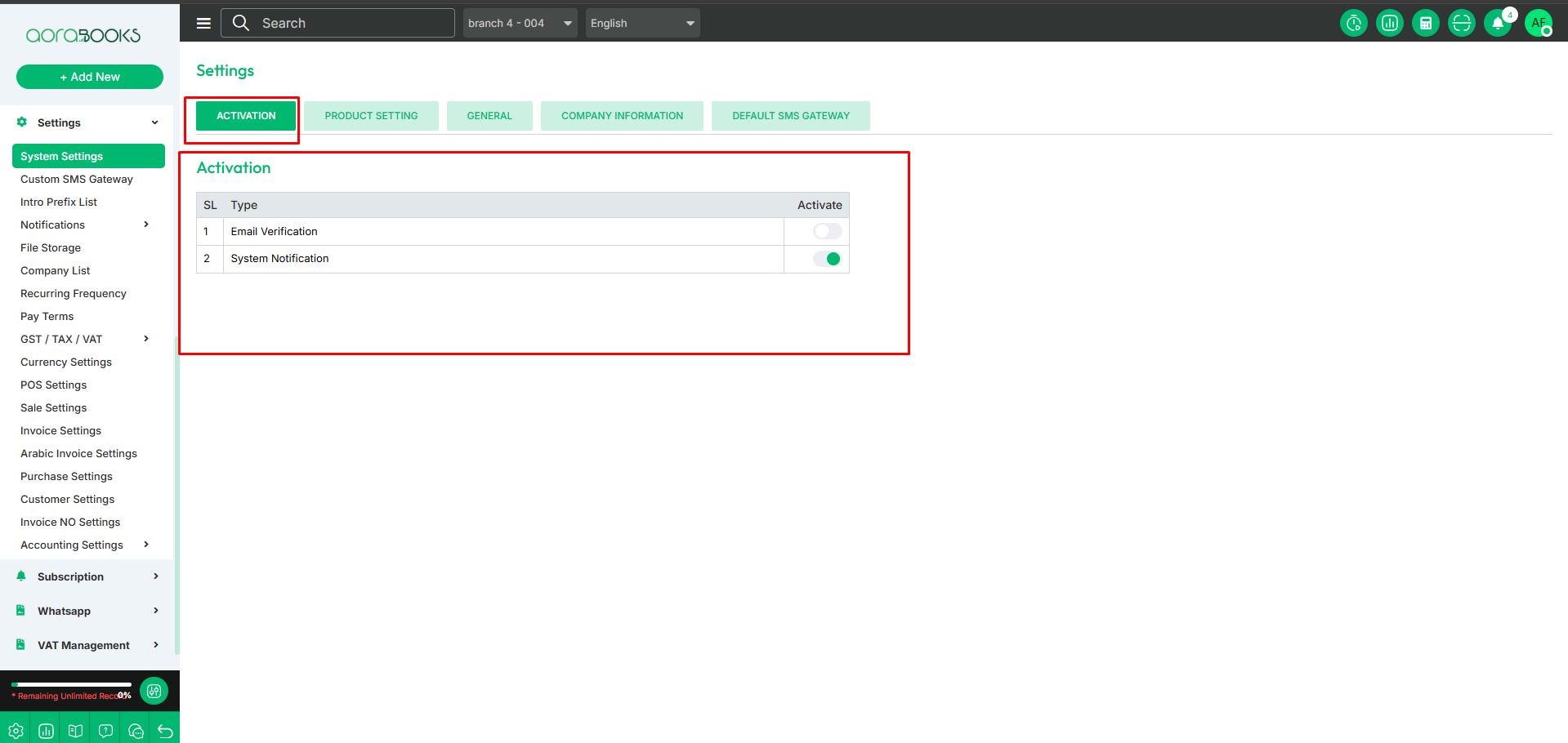 Activation: Activation is one of the settings. By using this setting, you activate /deactivate multiple options. such as: