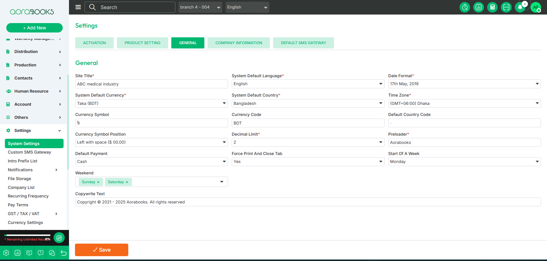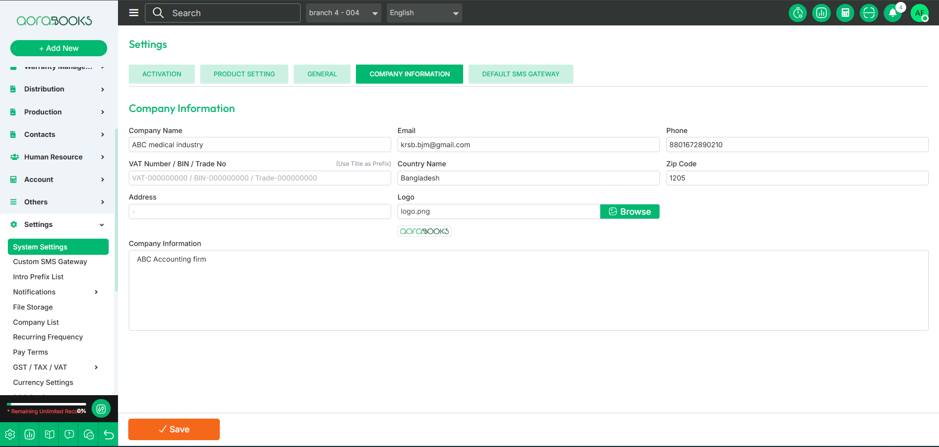 Save Button: After entering all the company details, click the Save button to store the information successfully.