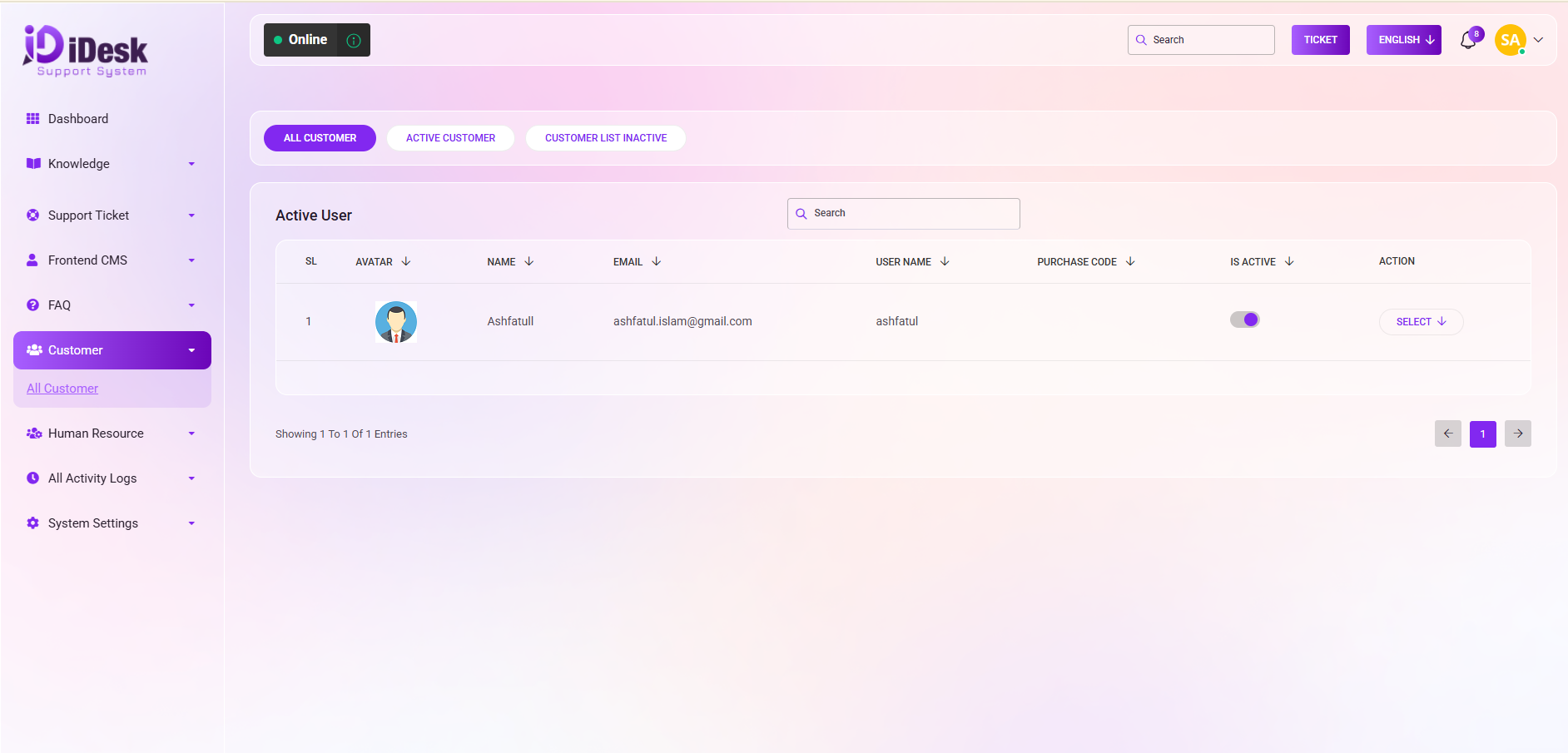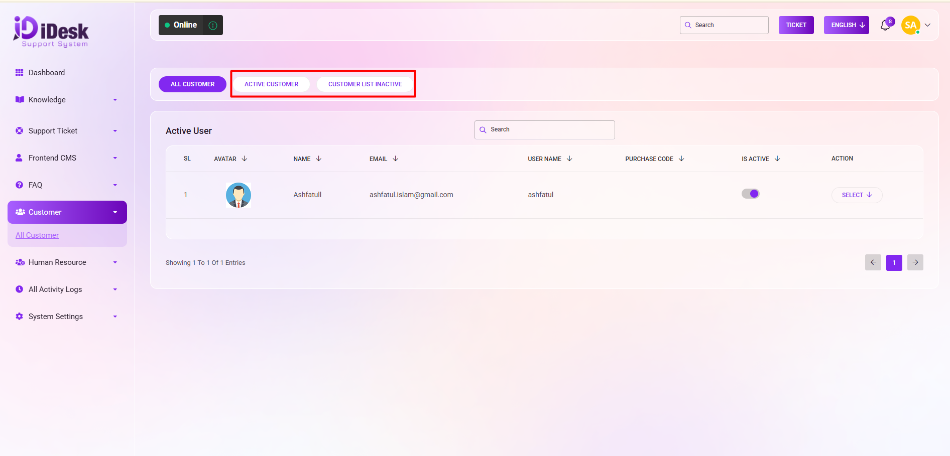 You can see only the active user list by clicking the “Active Customer “ button and also can see only inactive user lists by clicking “Inactive Customer ”.
