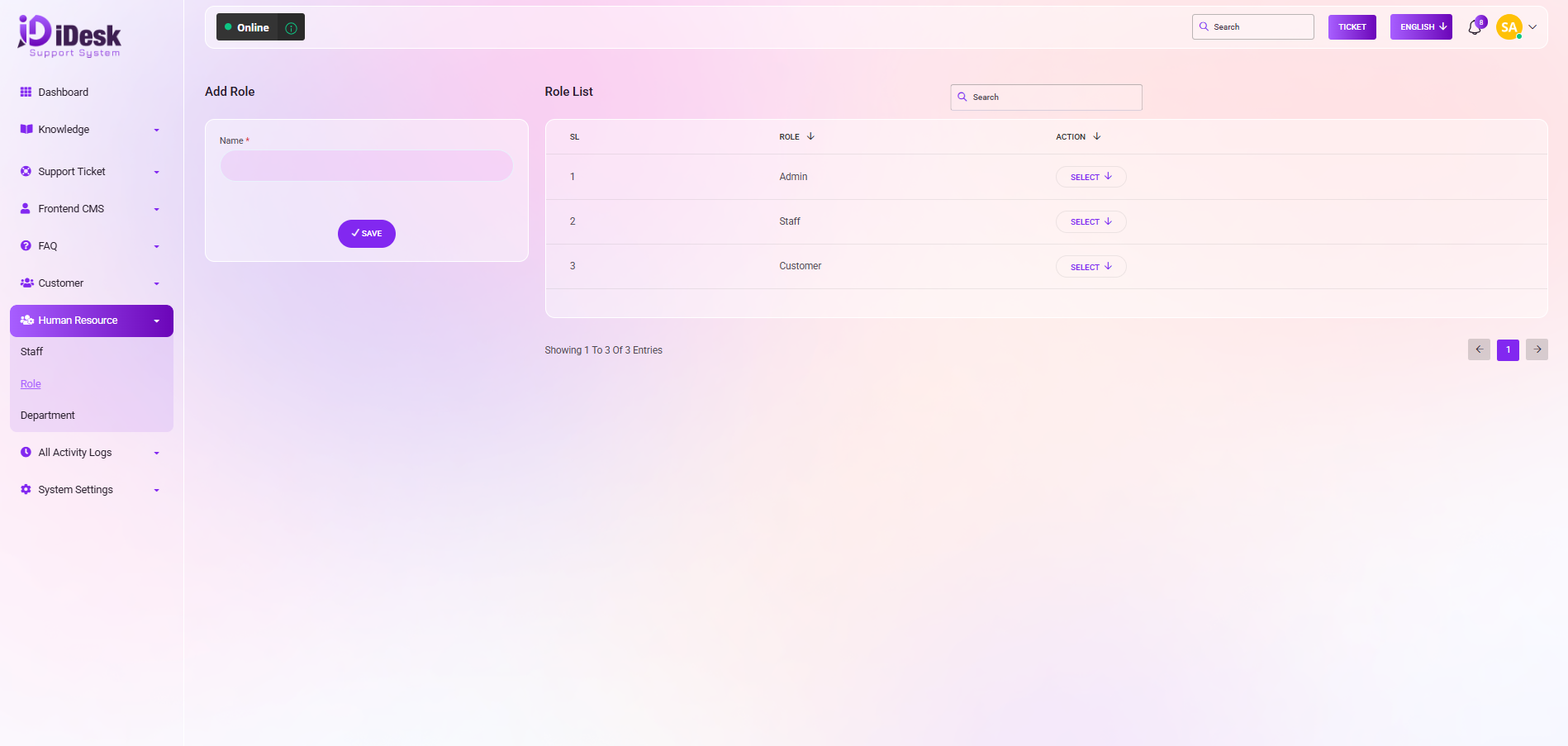 Assign Permissions: By clicking the button you can assign permissions to roles.