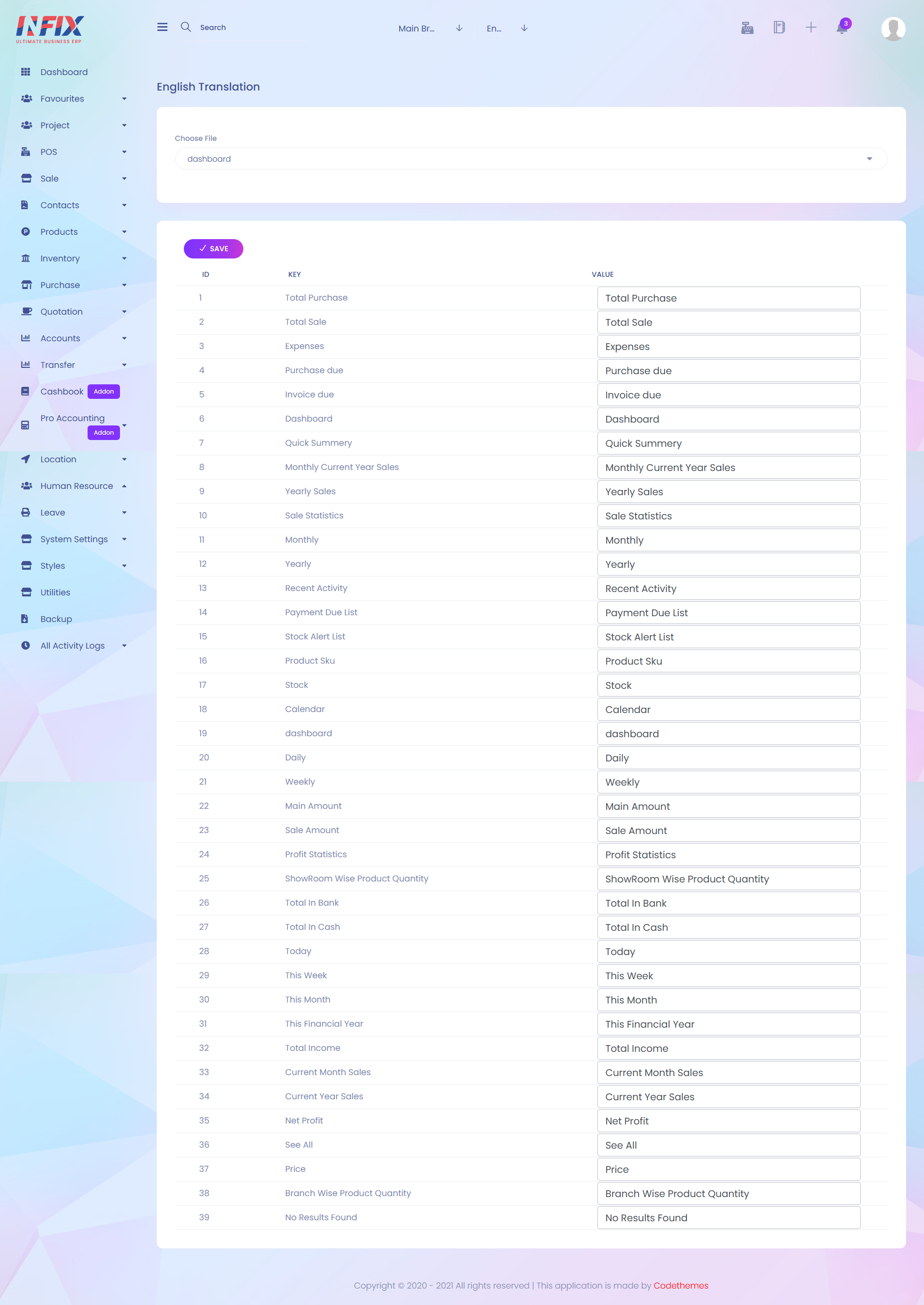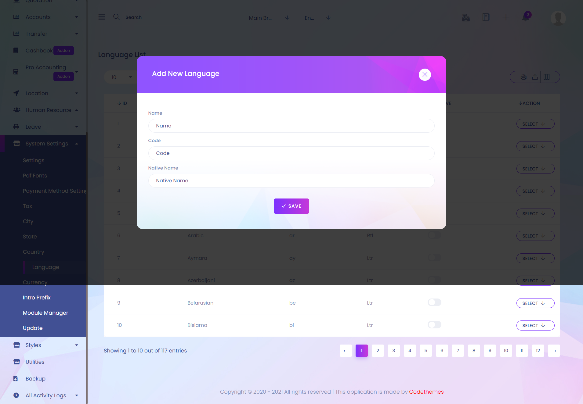 After filling all the required fields press "Save" button to complete new language creation.