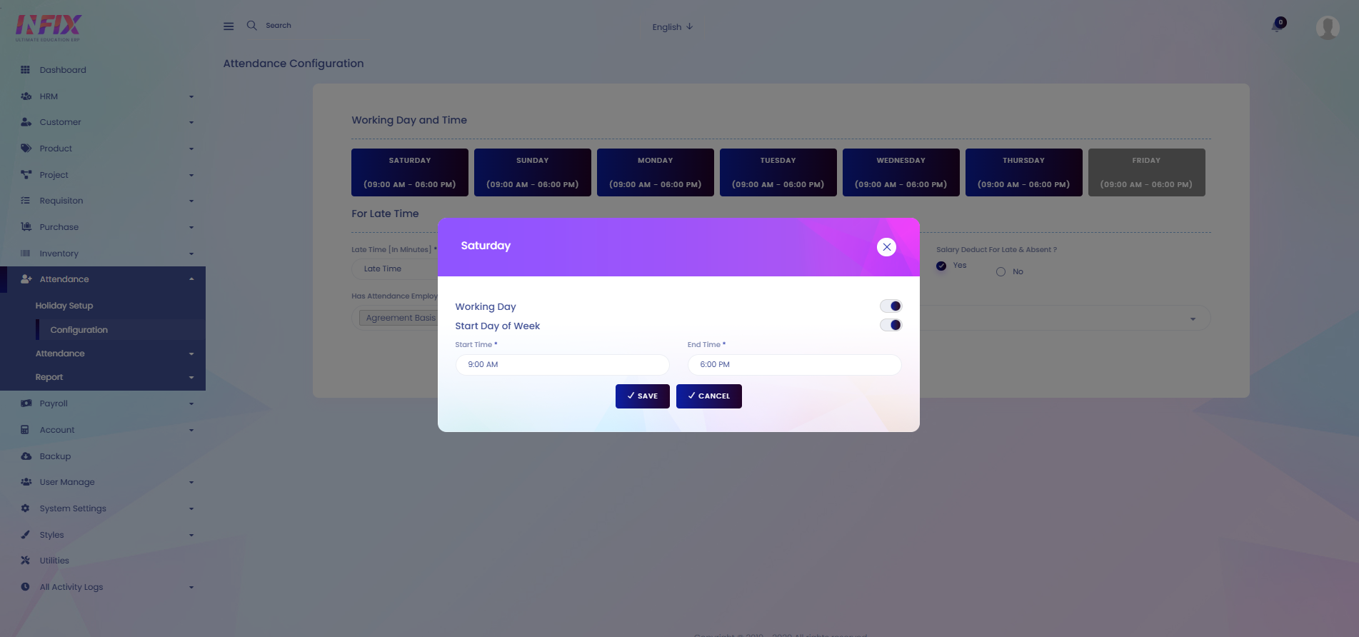 Salary Deduction Late & Absent: Choose whether salary will be deducted for late attendance.