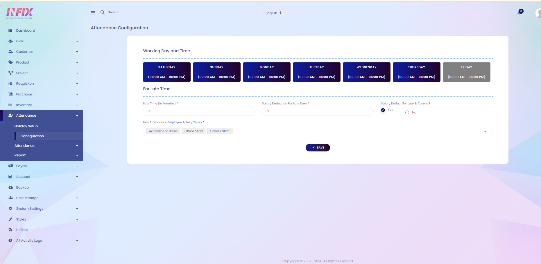 Has Attendance Employees Roles/Types: Assign employee roles or types for attendance tracking.
