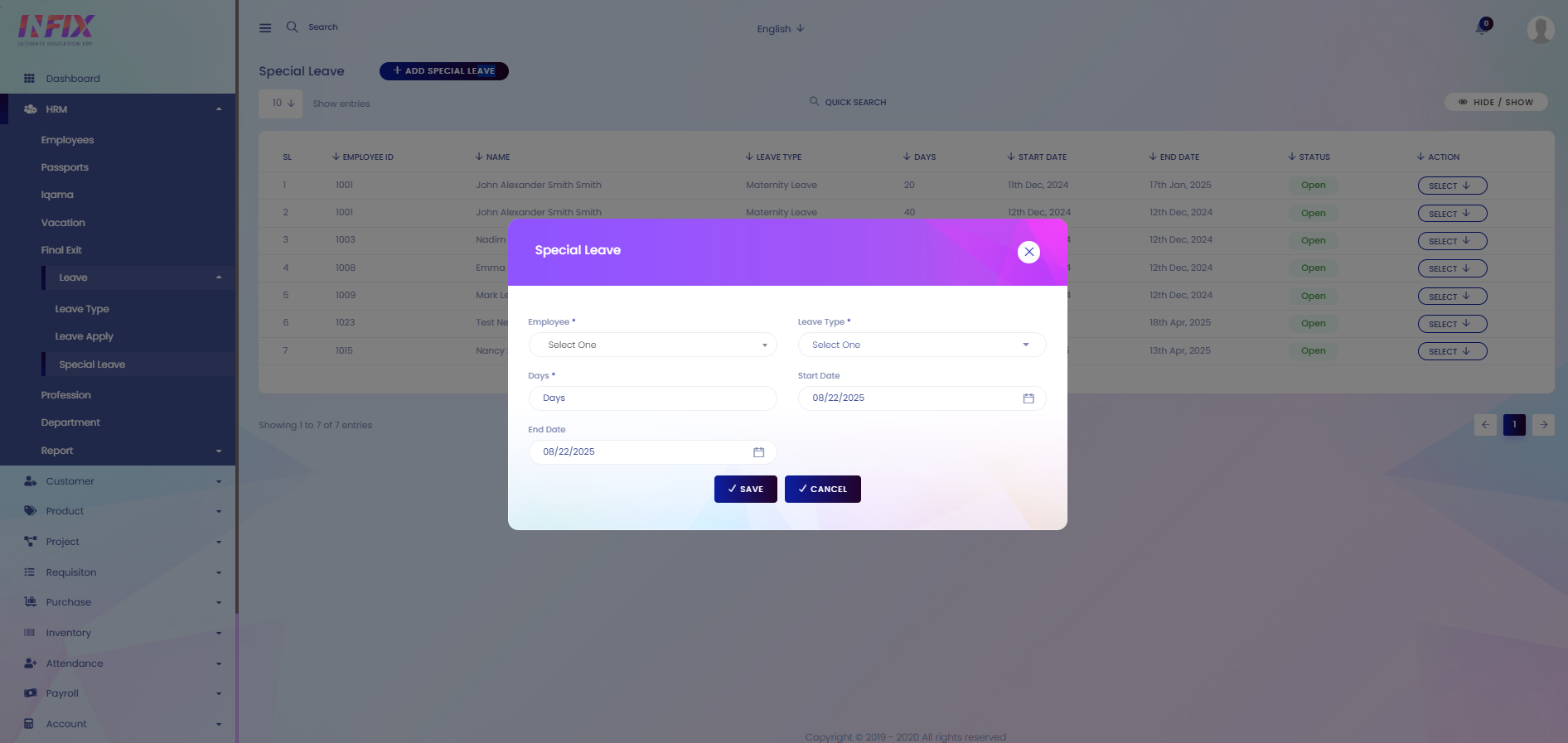 Add Special Leave: From here you can add a special leave. To add the leave just follow the below steps: