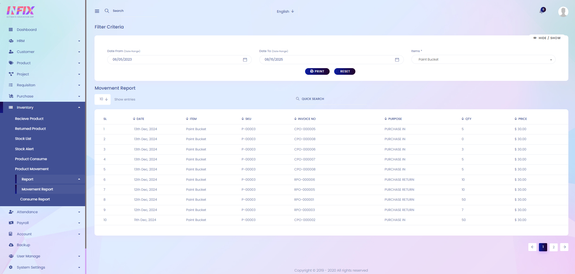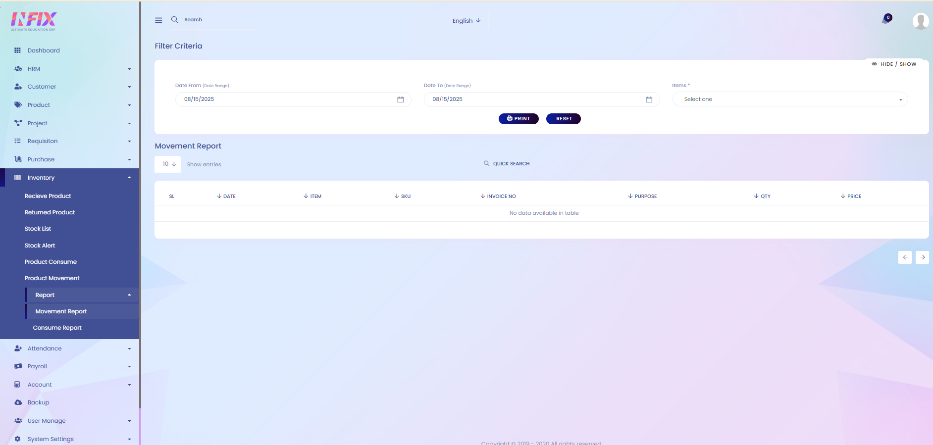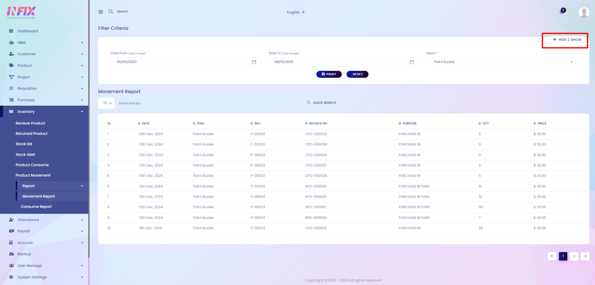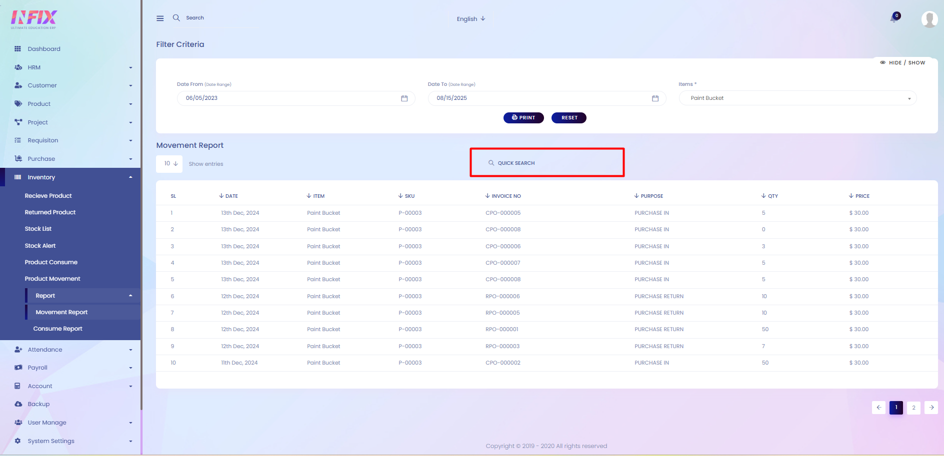 From here, you can view all movement reports with detailed information. To generate a report, follow these steps: