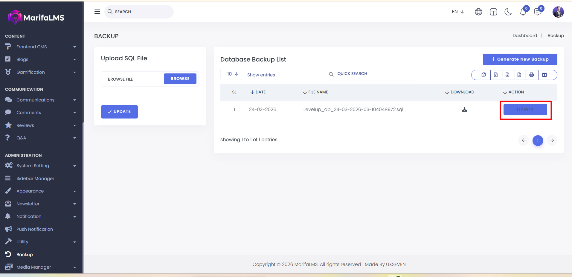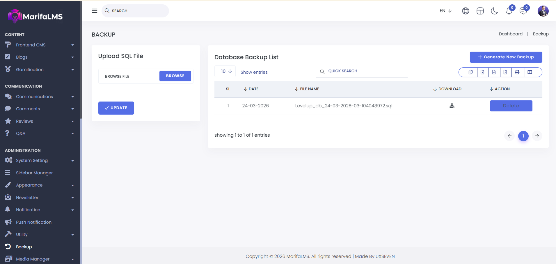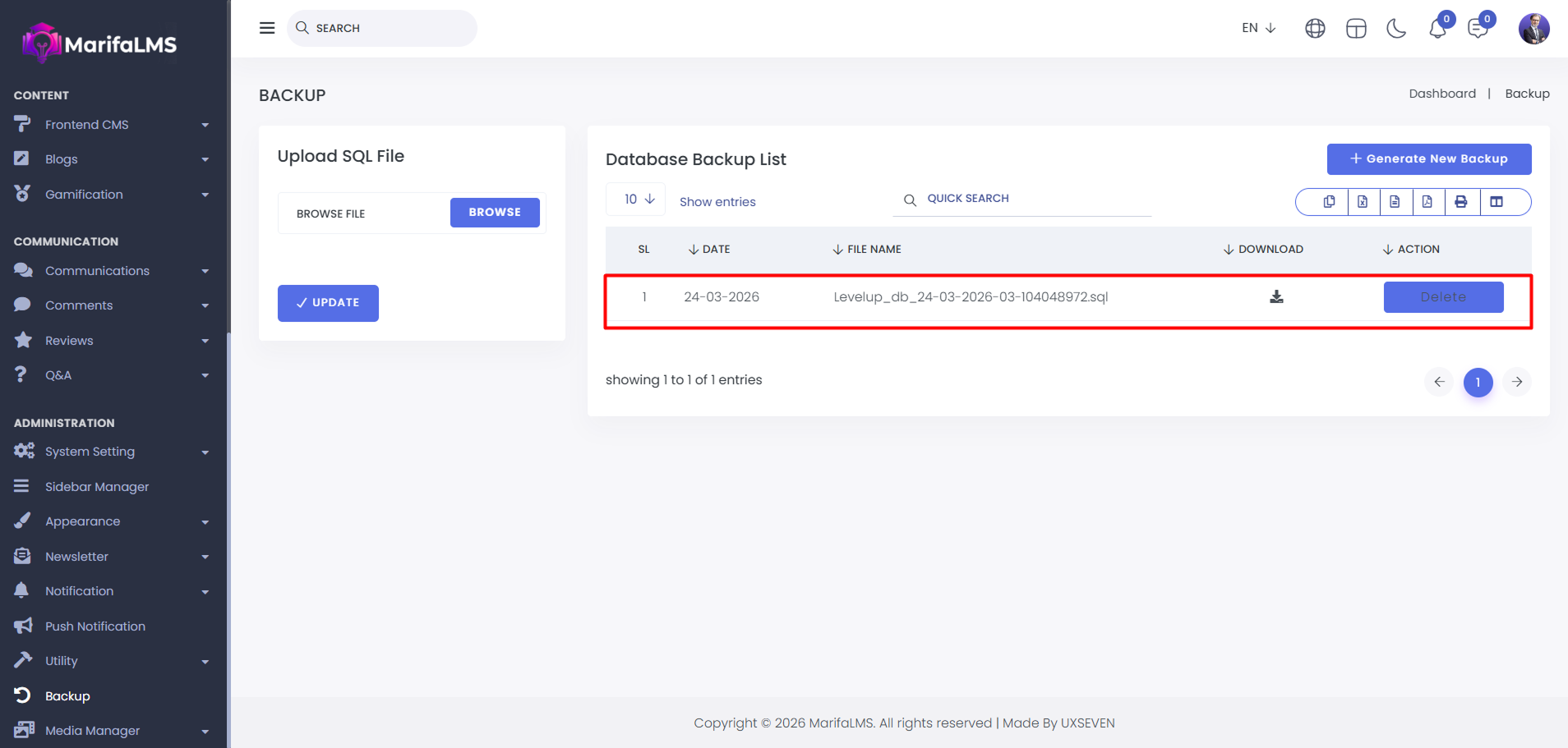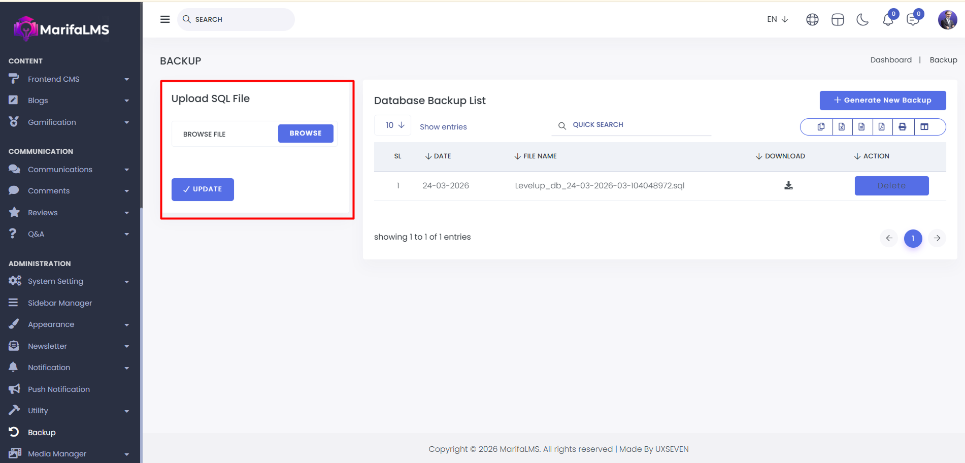 In this option, you can manually create backups for your MarifaLMS System.
