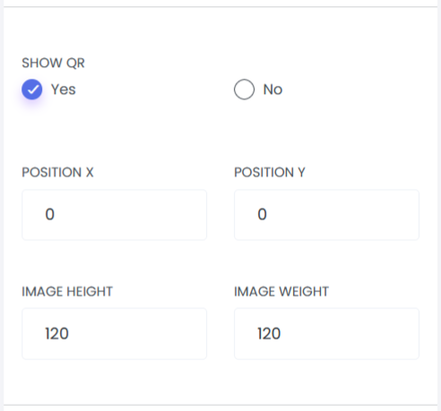Show QR Code: This option allows you to enable or disable the display of a QR code on the certificate using a Yes/No toggle. When enabled, you can configure the QR code’s position as well as adjust its height and width to suit your design requirements.