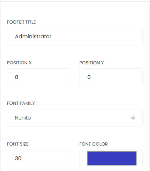 Footer Title: This option allows users to customize the certificate footer. Users can Set the footer title text. Adjust the footer title position on the certificate. Choose the font style, font size, and font color for the footer title.