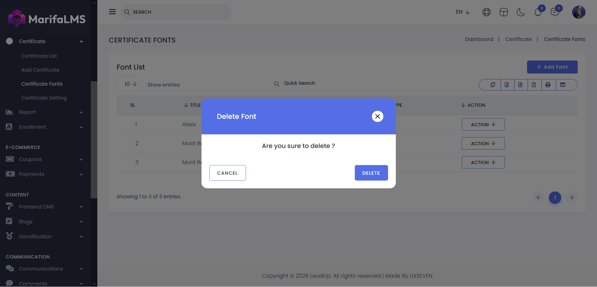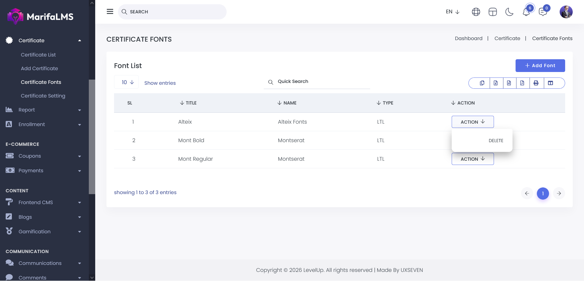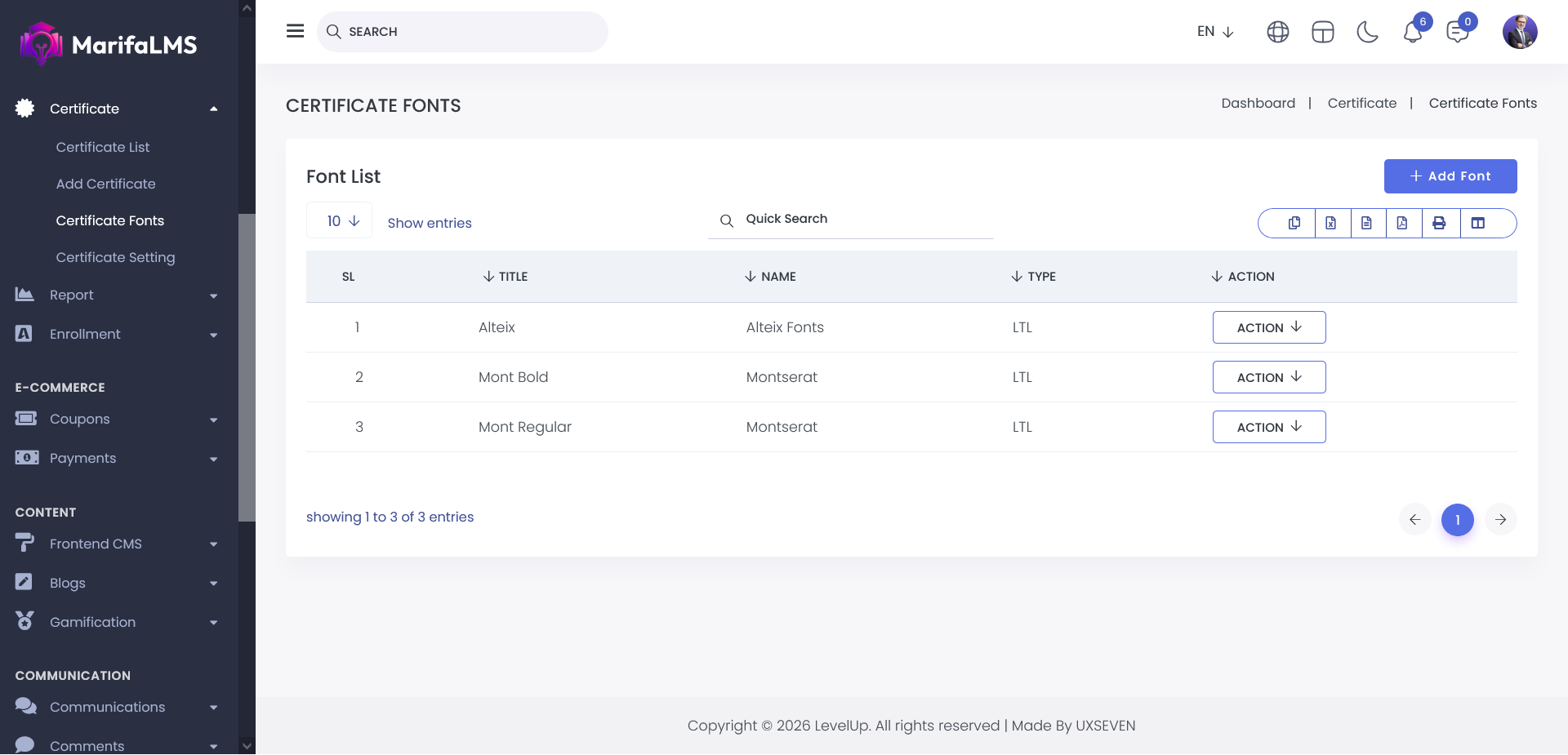 Think of the Font Management area as your toolbox for designing certificates. Here, you can choose and manage the fonts that make your certificates look clean and professional.