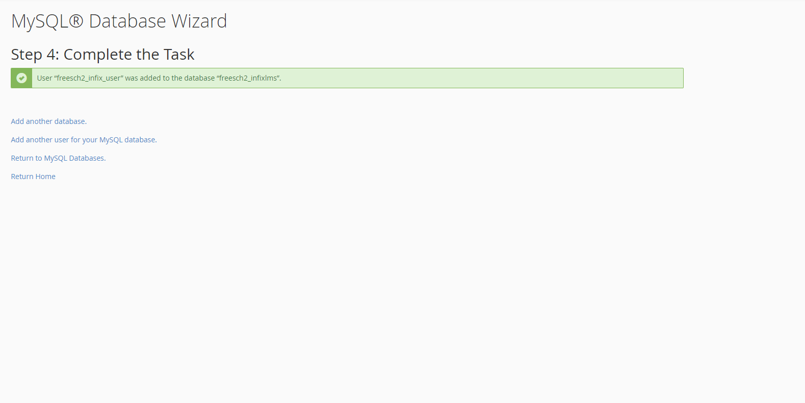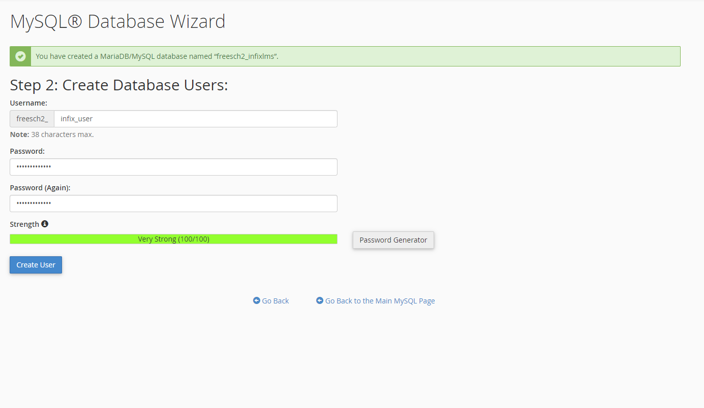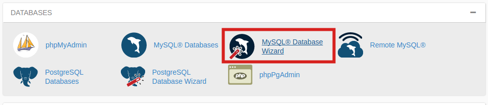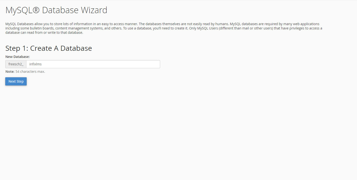 Go to “MySQL Databases” and create a database according to the following screenshot: