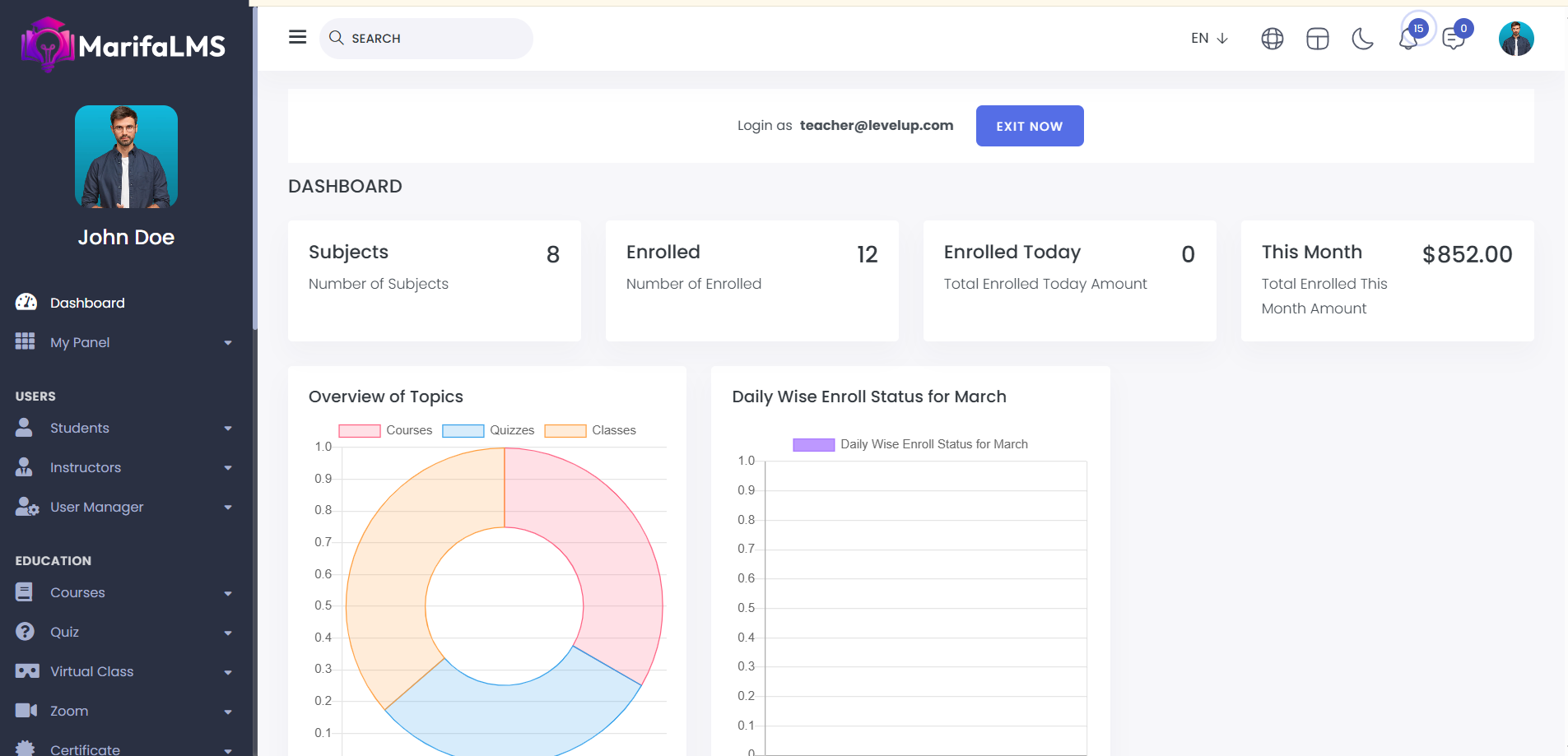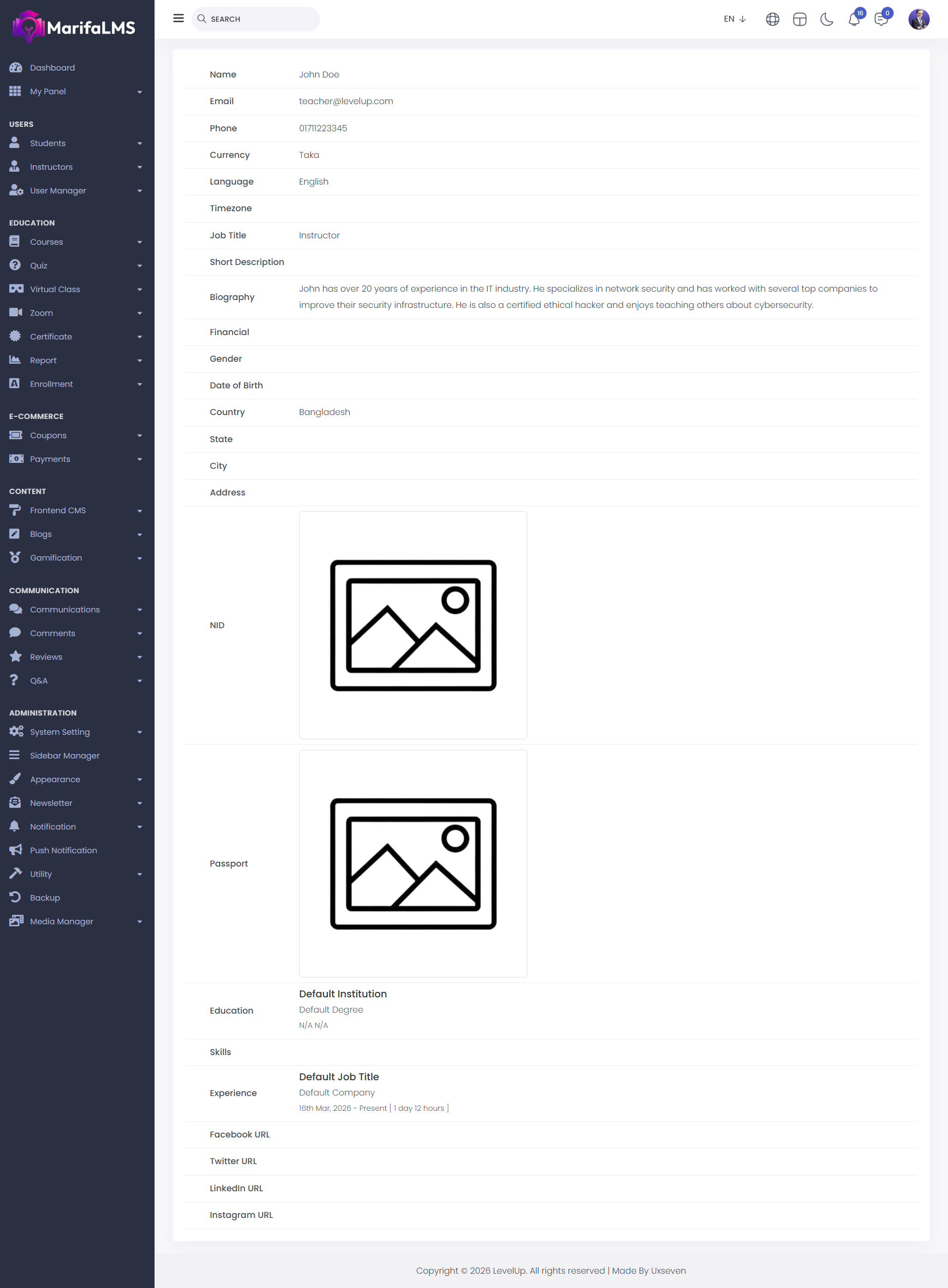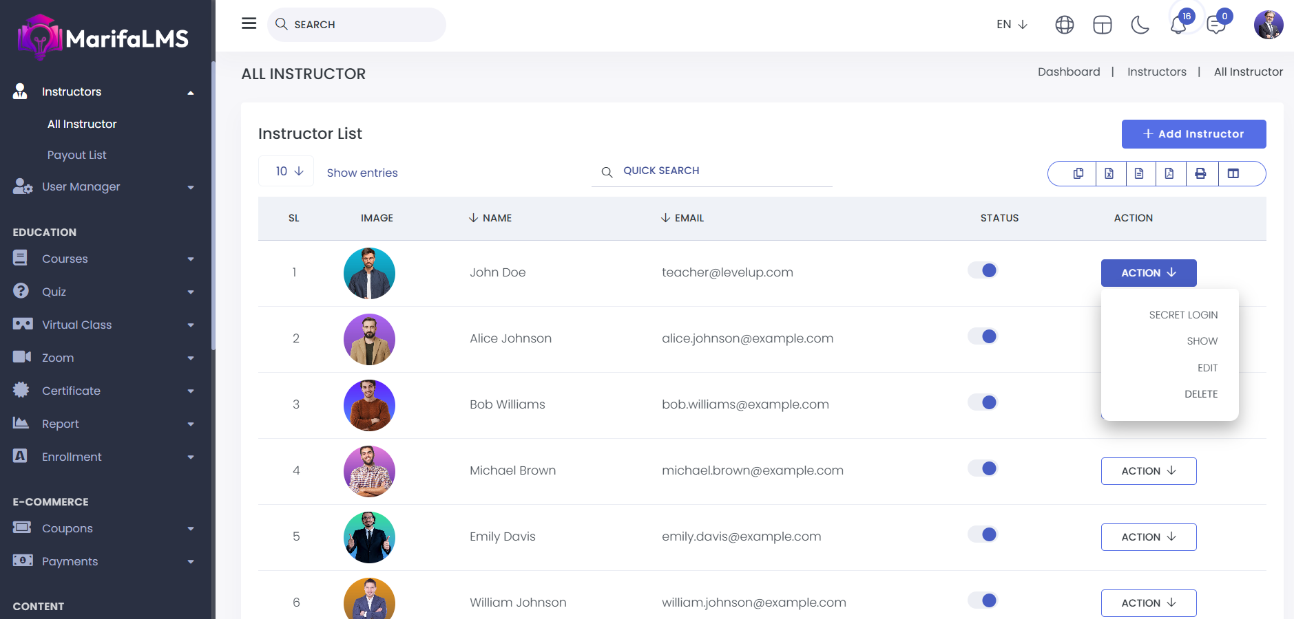 Secret Login: By clicking this, you can securely log in to any instructor’s account directly from the admin panel.