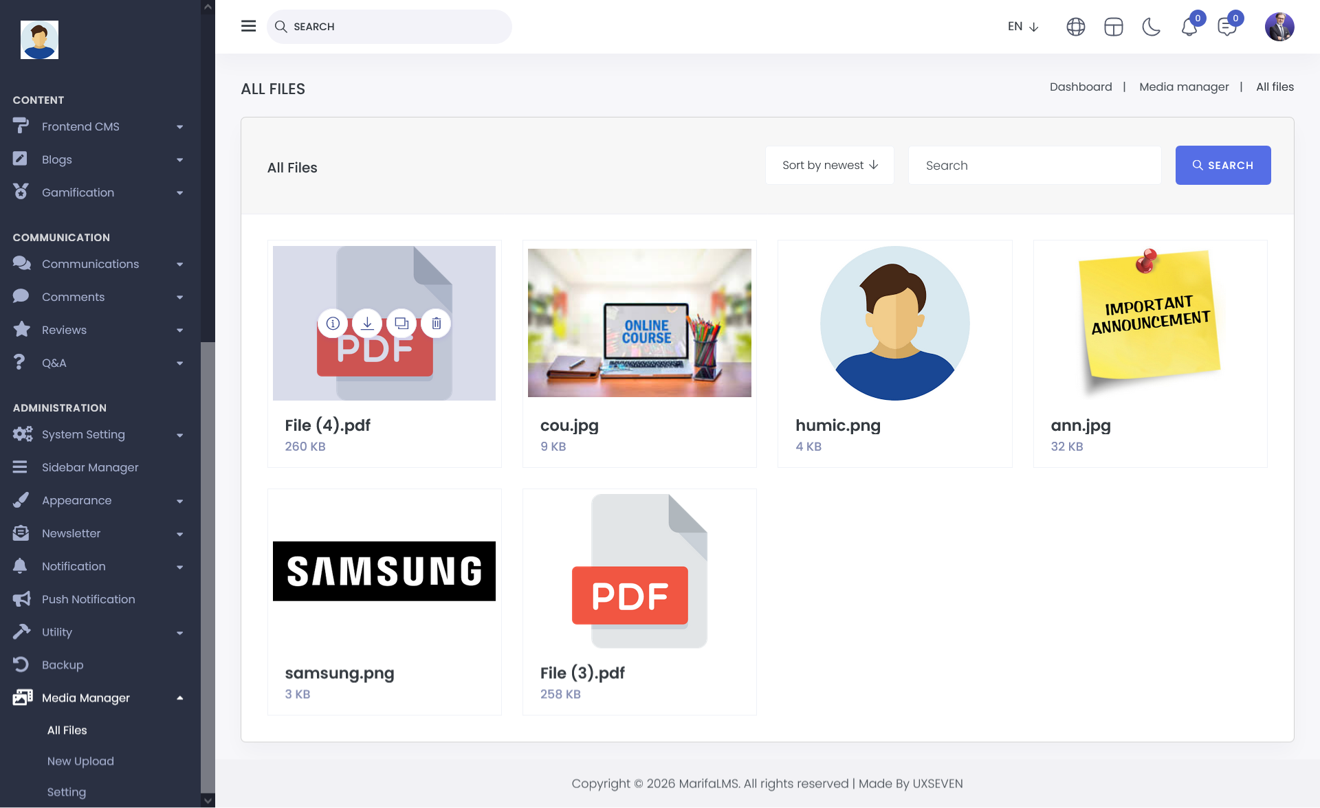 Sort By: Organize files based on Newest, Oldest, Smallest, or Largest to quickly find the files you need.